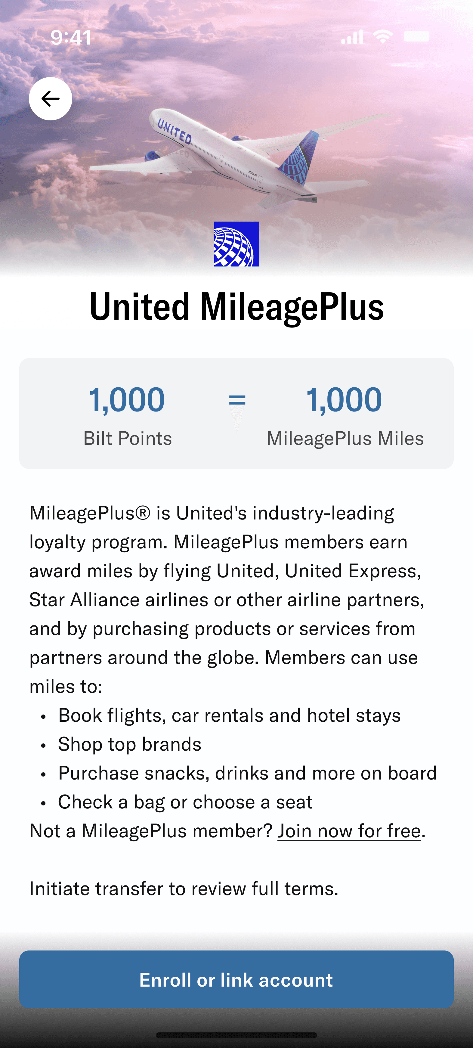 To transfer Bilt® Points to United® MileagePlus® miles, you must link your United MileagePlus account and Bilt account.